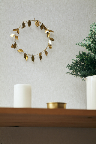 スカーフやバッグ、ネクタイなどかけておくのに便利なブラス サークル。 実はリースのベースにだってなるのです。 リースが終わったら、またハンガーとしての役目に戻って。 簡単にできるのでぜひ試してみてくださいね! 用意するものはブラスサークルと細い針金(100円ショプなどで販売されています)、ハサミ、木工用ボンド(できれば速乾のもの)、そしてもグリーンと赤い実です。