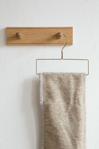 タイハンガーは、無駄なものを削ぎ落としたシンプルなデザイン。 さまざまな空間に馴染みやすい艶のない、少しくすんだブラスの自然な色と質感です。