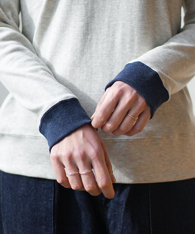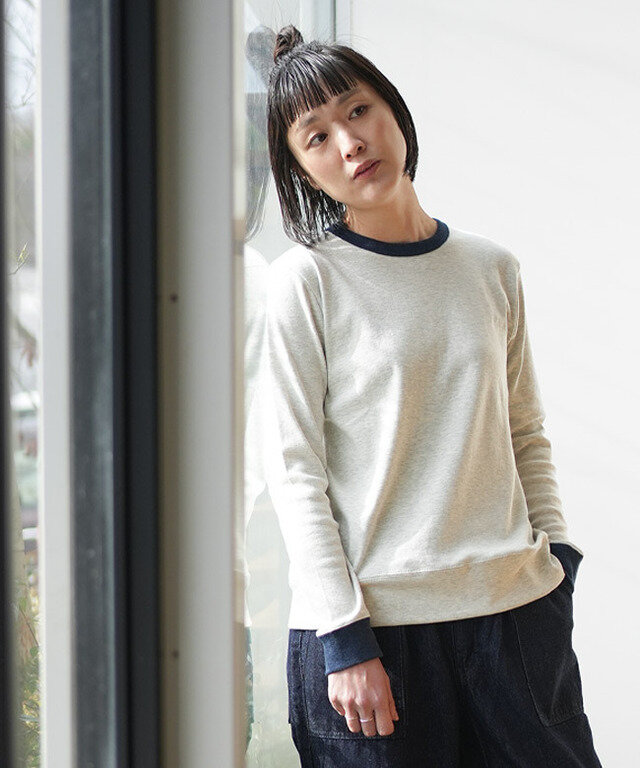身長:165cm / カラー:02.オートミール/トップネイビー/着用サイズ:FREE