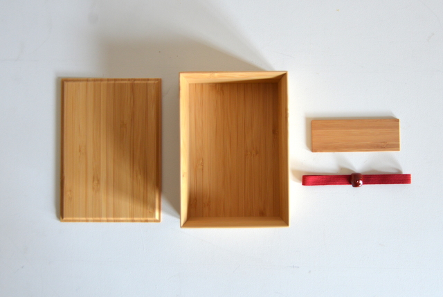 竹の模様を引き立てる根竹付きのランチバンドもセットになっています。見た目の美しさはもちろん、蓋をしっかりと固定して持ち運べるので、実用的に使えます。