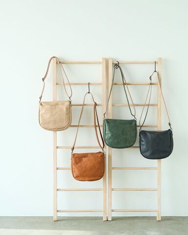 お買い物やおでかけなど、いつでも持ち歩きたくなるすっきりとかっこいいショルダーバッグ。派手さはないけれど、少し丸みがあるカタチと真鍮金具が落ち着いた味わいを出している、長く使いたくなるデザインです。