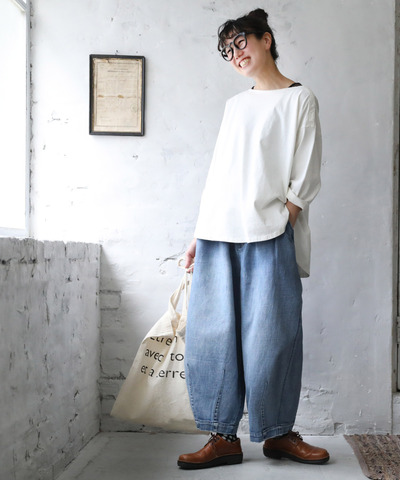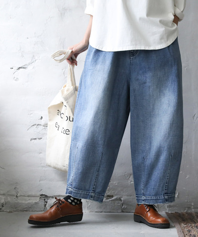 くらすこと|+to コットンリネンデニムワイドパンツ