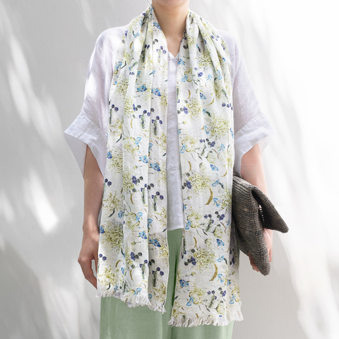 lino e lina|リトアニアリネンのボタニカル柄プリントショール・ストール フロレゾン|全2柄|母の日