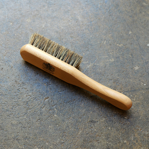 Hillbrushのクロスブラシは、ブナの木のハンドル、ブラシ部分はしなやかなイノシシの毛を使用し、長く愛用しても毛抜けしません。