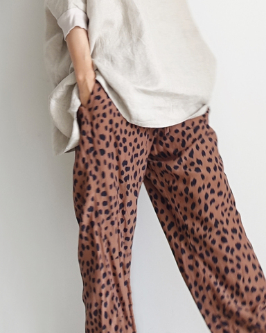 エレガントな落ち感ある生地にシックなレオパードプリントが重なった美しいテキスタイルです。