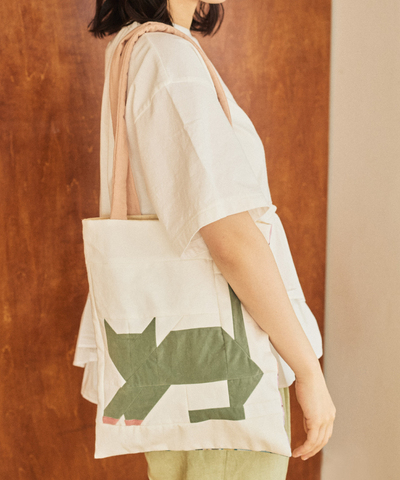 をコンセプトに活動しているchitose.Kのいぬとねこのパッチワークバッグです。