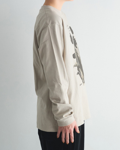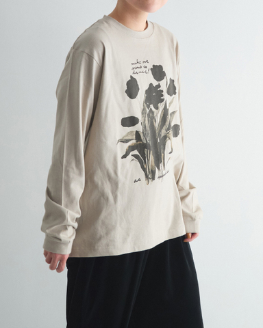 部屋の中で、ぐんぐんと踊るように伸びていく、チューリップの花の自由な姿を描いたロングスリーブTシャツ。黒の濃淡で表現した、大人でモードな雰囲気のデザインです。