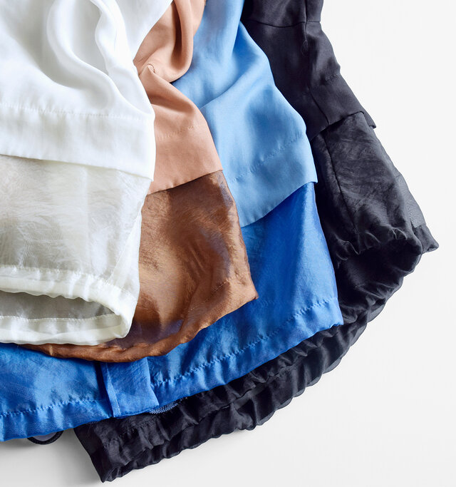 クリーニングの際は、濃色物は他のものと分けて洗ってください。また、湿った状態で放置せず、なるべく短時間で処理してください。アイロンの際はあて布を使用してください。