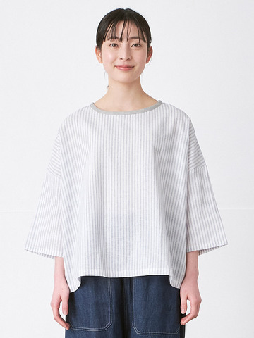 D*g*y|配色バルーン袖ワンピース コットンリネン混ストライプ D9558