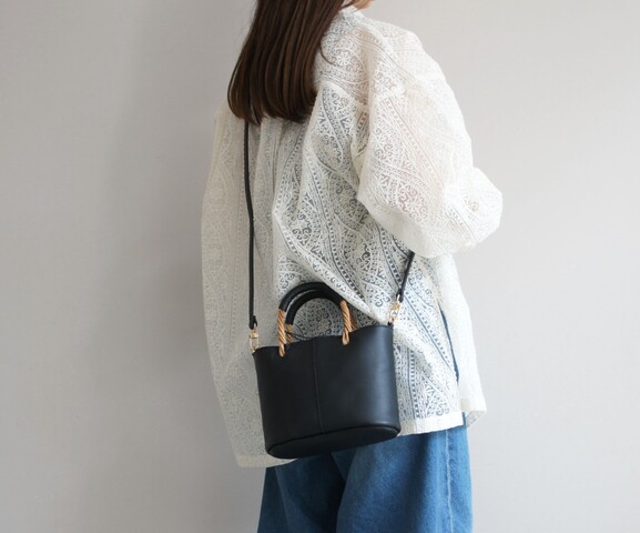 春夏定番のラタン素材にレザーを組み合わせた、ロングシーズン楽しめるTIDEWAYのARUROGシリーズ。こちらはワンポイントとしてハンドルだけにアラログ素材を使用したミニサイズの2WAYバッグです。張りのあるスムースレザーを使用し上品に仕上げました。取り外し可能なショルダーストラップ付きで、手持ち&斜め掛けどちらでもお使い頂けます。