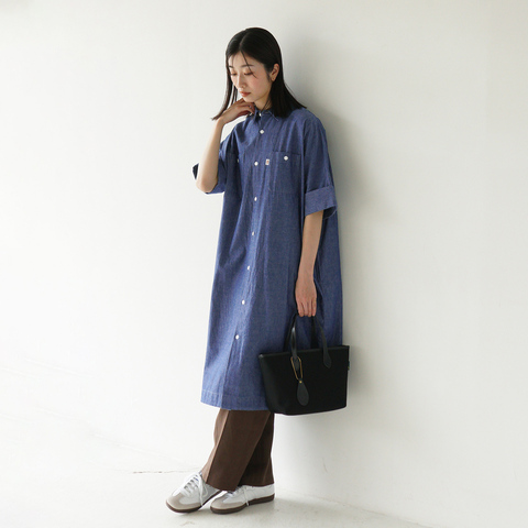 足元はトレンド感のあるadidasのSAMBA OGを合わせ、スポーティな要素をミックス。シンプルな配色とクラシックなフォルムが、大人カジュアルにぴったり。シャツワンピースの程よいラフさと相性抜群です。