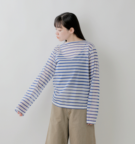 UNIVERSAL SEVEN|度詰め天竺ボーダーギャザーパフプルオーバー(US260CT015)