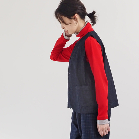 シンプルなシルエットのベストです。フロント左右にポケットがあります。