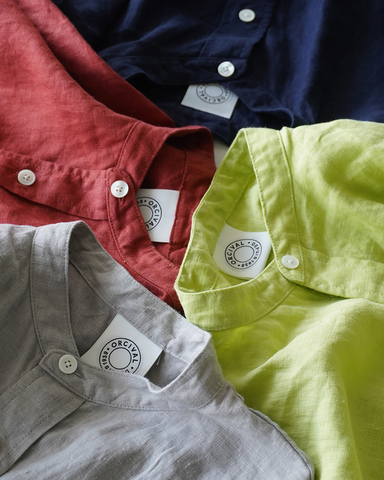 素材には40番手のリネンを使用した平織生地を採用。タンブラー加工による柔らかでふっくらとした風合いが、ナチュラルな表情を引き立てます。