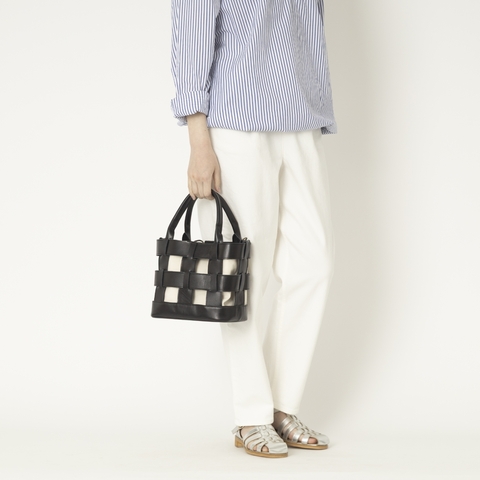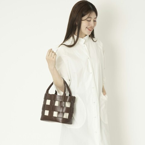 TRAD(トラッド)のバスケットバッグは、短冊状にした革を編みこんでいるので、見た目も軽やか。革バッグが本来持つきちんと感もありつつ、カジュアルに使えるのがいいところです。