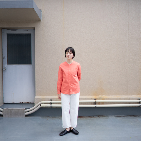 FRECKLE|cotton linen canvas /collarless shirt