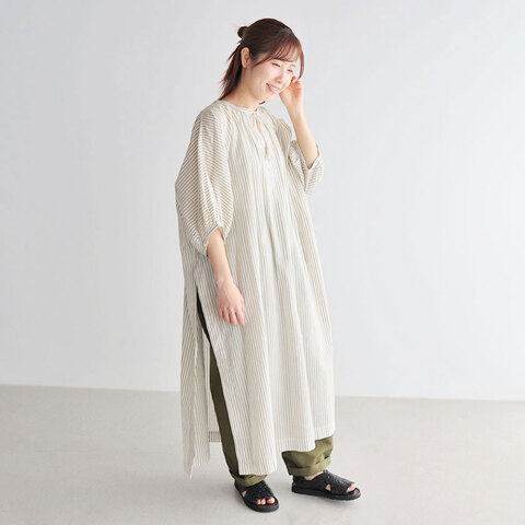 インド特有の歪んだ糸で織り上げた素材やくらしの中で育まれた伝統的な技法を活かし、文化や時代を超えて、今に合わせ進化を続けていくウェアブランド。日本のデザイナーの視点を取り入れたくすんだ色味とゆったりとリラックスして着れるシルエットが特徴です。ナチュラルな風合いも魅力の一つでコーディネートにほんのり個性を加えてくれます。