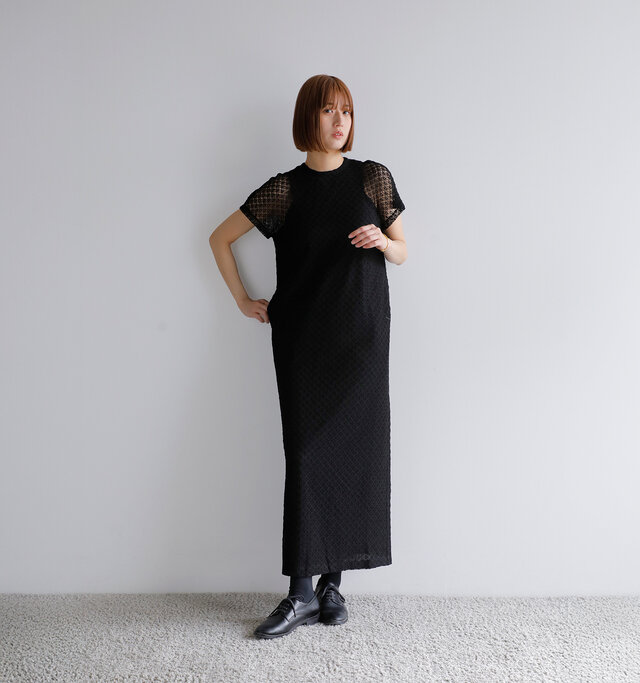 l’atelier du savon|線画のお花ラミー刺繍 ワンピース(73-01-OP-015-25-1)
