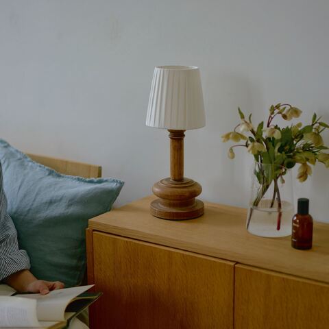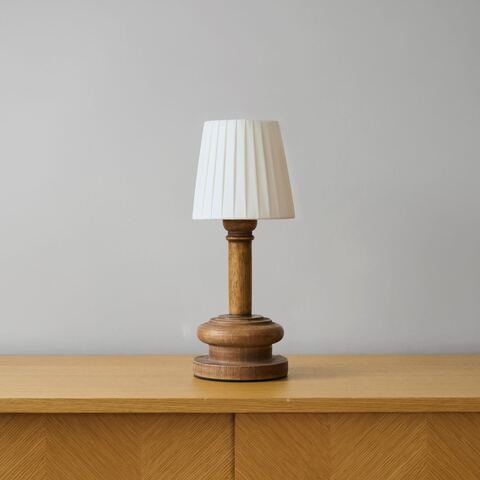 コンパクトなサイズで、ベッドサイドやリビングなど、日々のワンシーンに寄り添う穏やかなあかりを灯します。視界に入るたび心がふっと安らぐような、やさしい存在感を放つランプです。