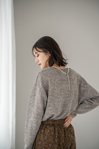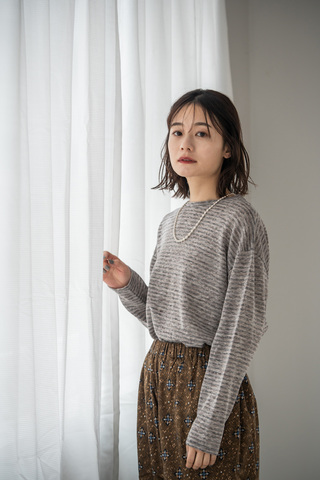 リネン混ならではの清涼感に、ほんのりとしたぬくもりをプラスした新素材のカットソー。メランジ糸で編み立てることで、表情豊かなニュアンスカラーのボーダー柄に仕上げました。優しいトーンが肌なじみよく、季節の変わり目にもすっとなじむ大人のカジュアルアイテムです。