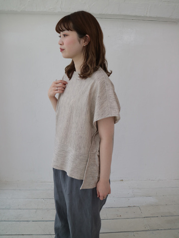 ほどよい厚みでさらりと着られる綿麻素材に、ツイードのような表情をプラスしたカットソープルオーバー。