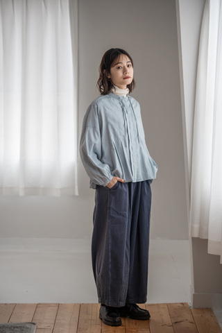 ヴィンテージのような表情のあるニュアンス感溢れる裾ダーツパンツ