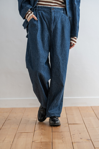コットン×リネンをブレンドしたデニム素材を使用した、大人のためのフルレングスパンツ。