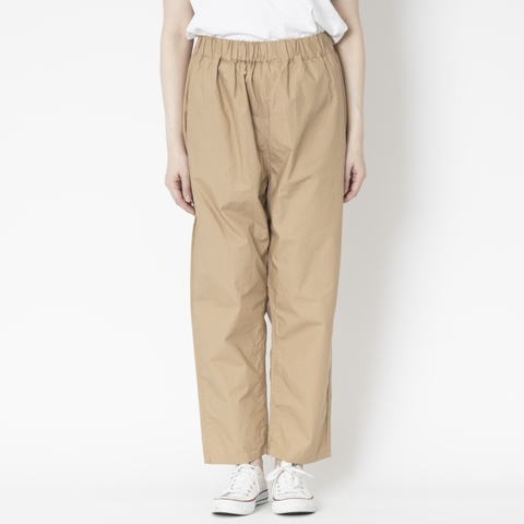 通気性に優れた綿100%で風通しが良く、涼しく穿くことができますが、高密度で織られた平織り生地なので透け感は気になりません。また、自然な光沢のある生地はカジュアルでありつつも、どことなく上品。だから、ブラウスやシャツと合わせた大人カジュアルなコーディネートも様になります。