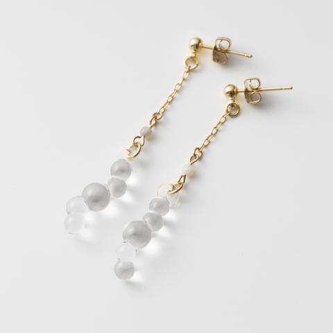 こちらは耐熱ガラスメーカーHARIO(ハリオ)と、アクセサリーブランドtane(タネ)のコラボレーションラインで、ガラスの繊細さを活かしつつ、大人の女性に合うデザインのピアスです。大ぶりで存在感はありますが、軽量なのでストレスが無いのがいいところ。お修理も可能とメンテナンスもしっかりしているので、安心してつけられるのも嬉しいポイントです。