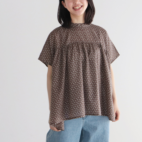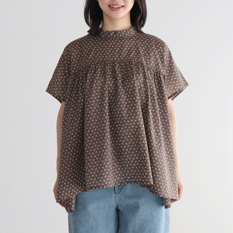 SOIL|60s CAMBRIC FLOWER PRINT GATHERED SHIRT