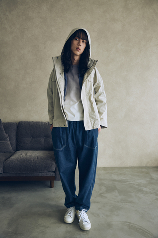 コットンブレンドのナイロンライトアウターは、肌寒くなってきた時期に重宝するアイテムです。立ち上がった首元やしっかりジップを閉めて風をシャットアウトできる仕様にこだわった1枚は着用して実感していただきたいポイントです。