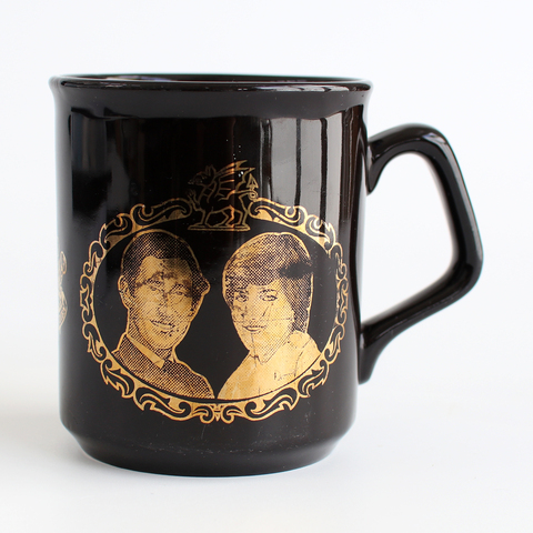 VINTAGE|Princess Diana&Prince Charles Royal Wedding MUG【BLACK】/マグカップ エリザベス女王【クリスマスギフト】
