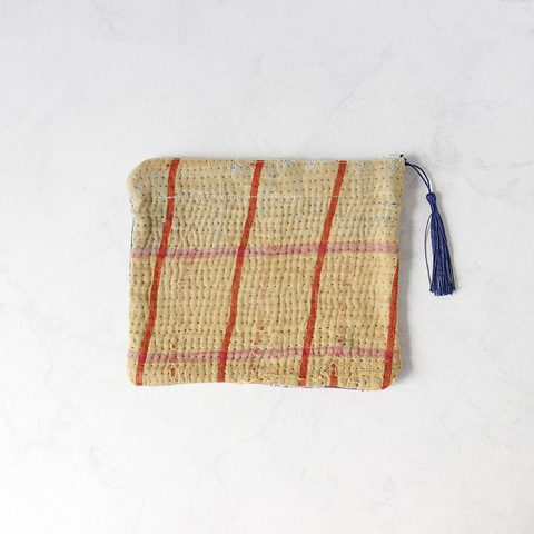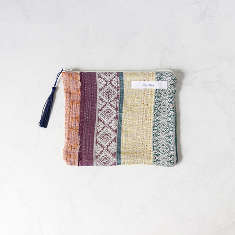 インドに古くから伝わる刺繍布「カンタキルト」を使って製作したポーチ。