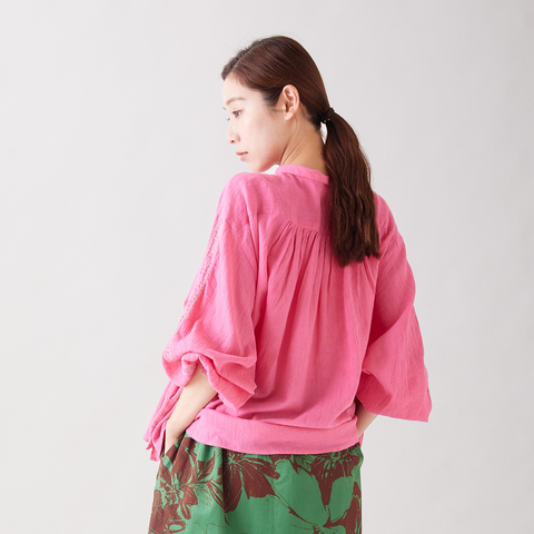 このシャツは、ふんわりとしたクレープ素材で仕立てました。