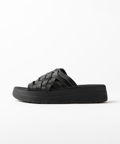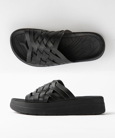 手編みのスライドデザインが足をしっかりと支え、アッパーストラップには上質な人工皮革を採用。