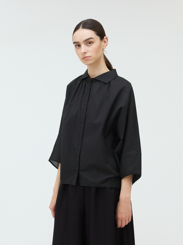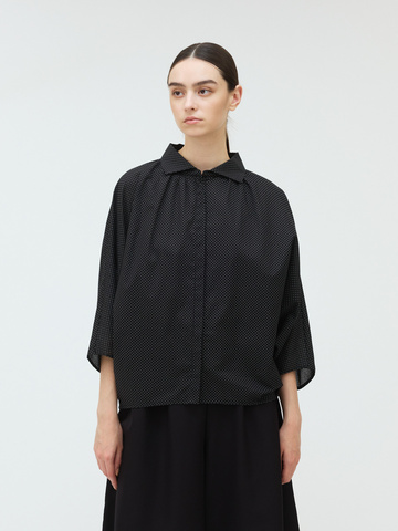 身頃とは別の生地に変えてデザインした、襟と袖にプリーツをあしらった上品な1枚。 襟をだしたり、袖口を見せたりインナー使いとしても活躍していただけるシャツです。