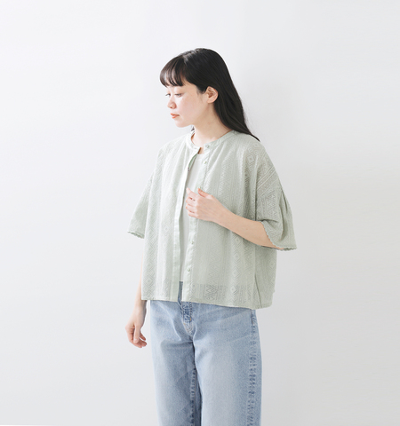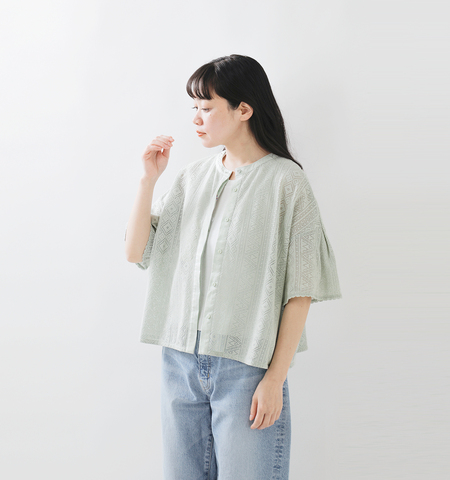 Bon Vieux Temps|コットンローン レース スタンドカラー ブラウス 31184-mn