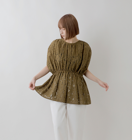 SOIL|ボイル チュール レース フレンチスリーブ スモック ブラウス nsl25052-kr