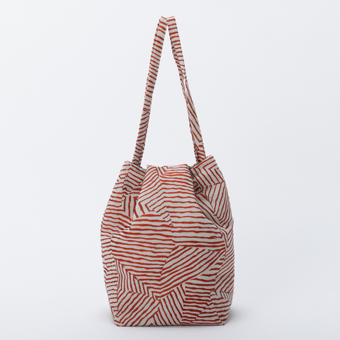 普段のお出かけではトートバッグとして、中身を落とさないように気をつけたいお出かけ時には巾着バッグとして、長く歩く旅先では巾着ポシェットとしてなど、持ち方を変えて楽しめます。