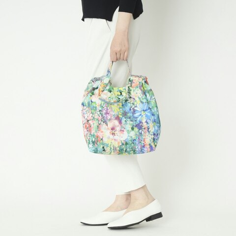 こちらのバッグの特徴は、なんといっても鮮やかな色彩です。フランスの小さな村ジヴェルニーをモチーフにした、フランス産のプリント生地です。