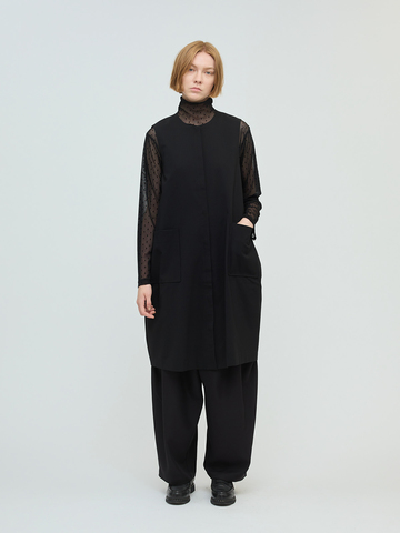 mizuiro ind|ポケット付きクルーネックロングジレ