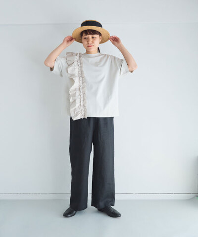 リネン特有の自然なシワ感とやさしい風合いが魅力の、フレンチリネンストレートパンツ。