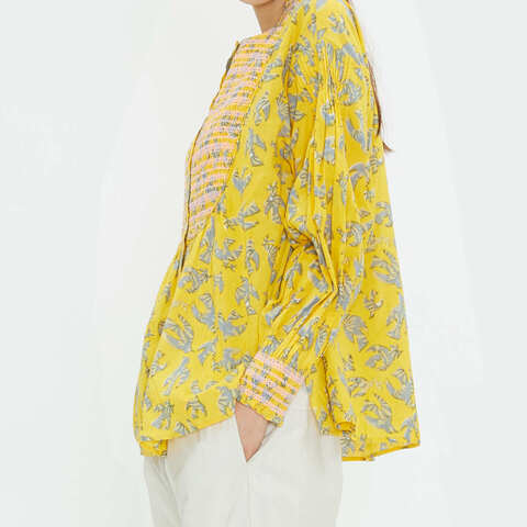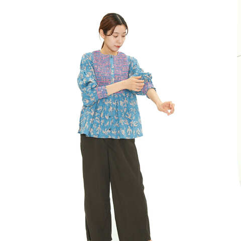 胸元と袖口のスモッキングがアクセントになったブラウスです。