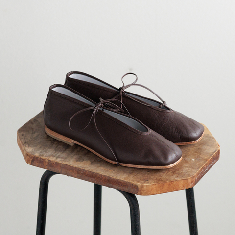 つま先が平らなセミスクエアトゥのレースアップシューズ「LACE UP BALLET」。