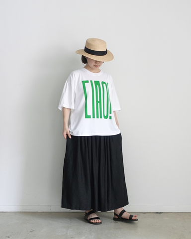 程よくルーズシルエットながらボトムを選ばず合わせやすい着丈バランスです。パンツやスカートとのシンプルなコーデも◎ サロペットとのレイヤードや、リラックス感あるシャツやジャケット、カーディガンを羽織ったときのプリントの見え方もアクセントになります。