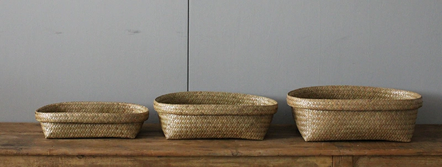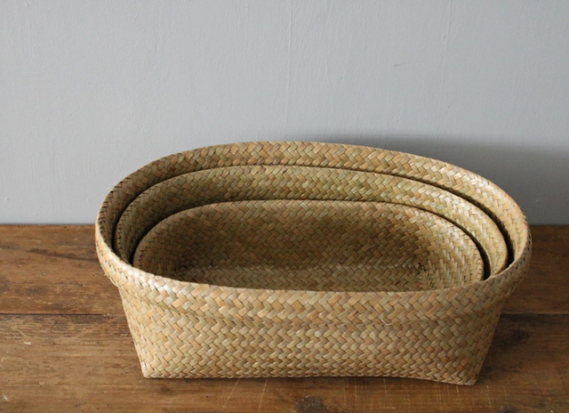 【3点セット】カチュー水草かご楕円。タイで作られたシンプルで使いやすい入れ子のかご。