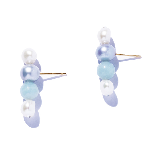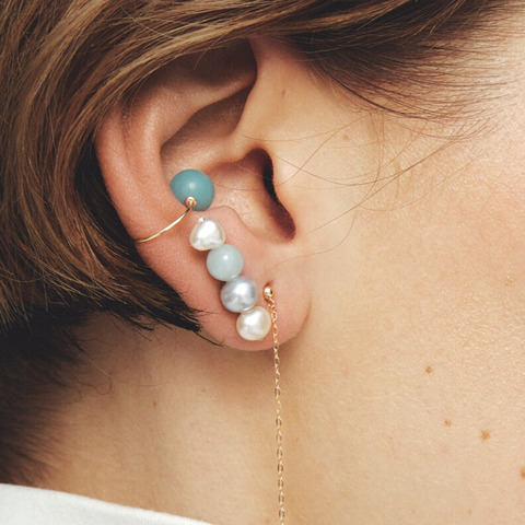 淡水パールとアマゾナイトによる清らかさと、重厚感のあるグレーパールが合わさって、耳元に奥行きある美しさをもたらします。