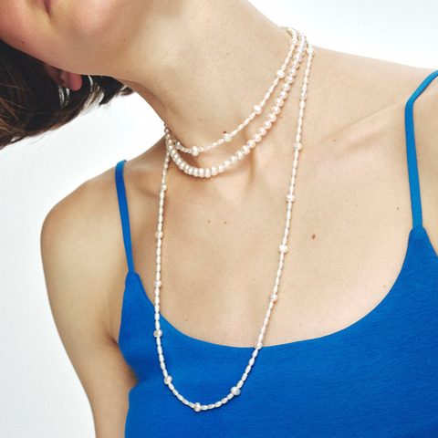 軽装にメリハリを生み出す【リズム パール ネックレス】