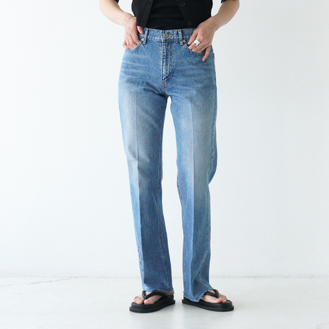 美しいムラ感と自然な色落ちが魅力のヴィンテージデニムに、女性らしいセミフレアシルエットを掛け合わせた一本。