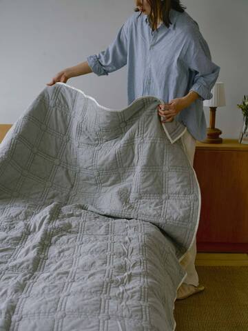 ベッドやソファにさっと掛けるだけで、お部屋の印象をアップデート。洗うたびに風合いが増すので、長くご愛用いただける一枚です。